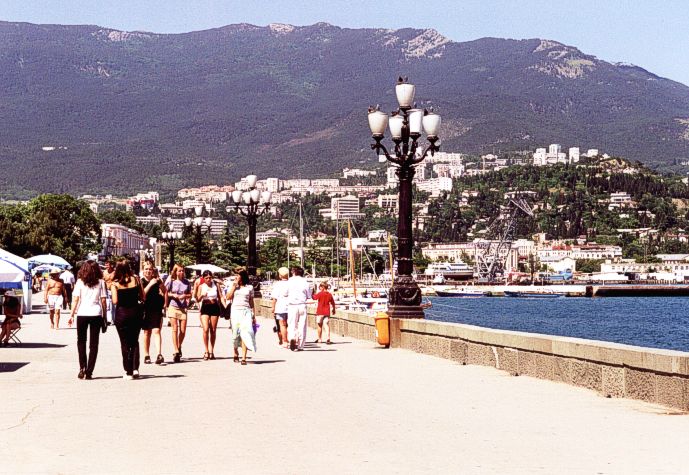 Auf der Uferpromenade von Jalta ist im Sommer viel los.