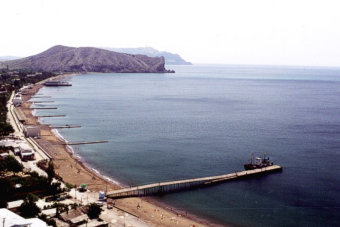 Hier nun ein Blick auf auf den Strand und die Promenade von Sudak.