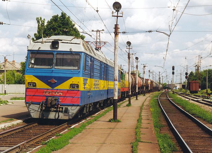 Im Bahnhof Verchnedneprovsk begegnete uns die neueste Erungenschaft der ukrainischen Eisenbahn. Die Lok der Baureihe DE1 hat übrigens eine in Dnepropetrovsk aufgerarbeitete ChME3 im Schlepp.