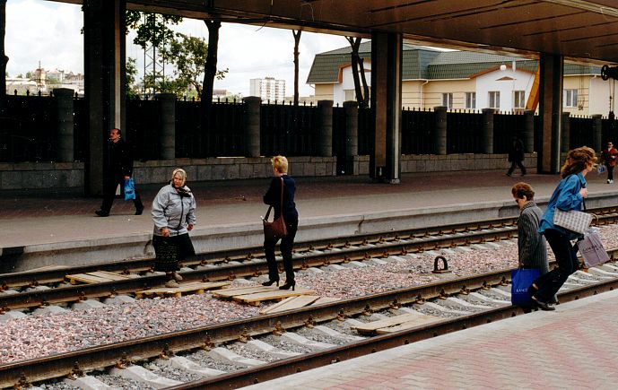 Mit solchen abenteurlichen Überwegen mussten die Reisenden während der Bauarbeiten zu frieden sein. Gestört haben düfte es die wenigsten, denn quer über die Gleise rennen ist dort an der Tagesordnung.