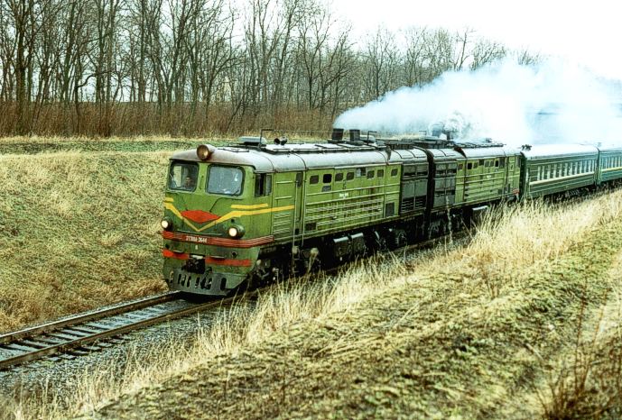 Die 2TE10L-3644 machte besonders durch ihre Rauchentwicklung auf sich aufmerksam. Dieses Bild entstand am 16.03.1997 in der Nähe von Grebenka.