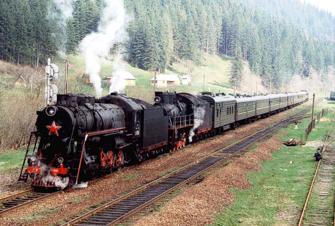 Mit den Dampfloks L-3535 und EM 735-72 fuhren wir am 23.04.1998 durch die Karpaten.