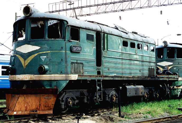 Die Reste der TE3-5797. Sie hat zum Schluß wohl als Schneepflug gedient, In diesem Zustand präsentierte sie sich am 31.05.1999 im Depot Baranowitschi.