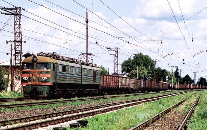 Am 03.06.00 rumpelt die WL8 -1340 mit einer endlosen Wagenschlange durch Werchnedneprowsk.