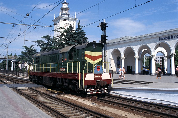 Bei strahlendem Sonnenschein war ChME3-3274 mit Rangierarbeiten in Simferopol beschäftigt..