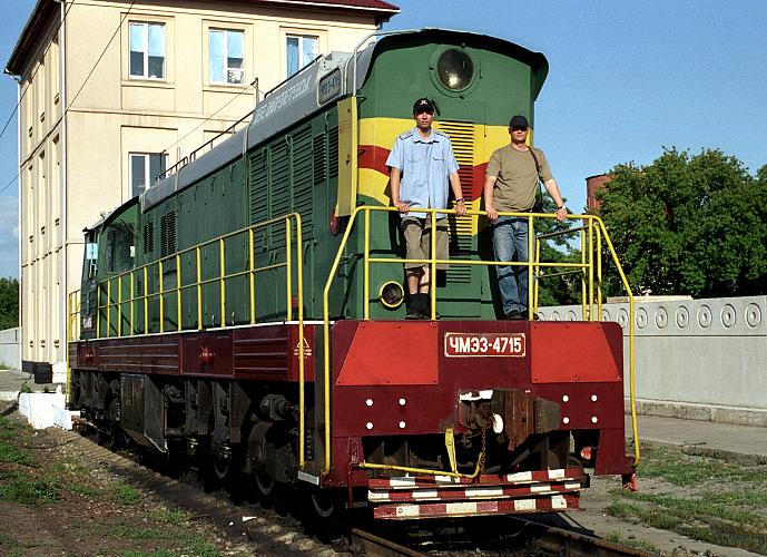 Kam gerade recht zum Gruppenfoto, ChME3-4715, im Hintergrund ein typischer Stellwerksbau